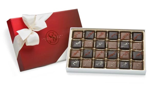Sweet and salty, salty and sweet, either way, these caramels are delicious! Soft and chewy caramels made with fresh cream and butter, covered in our luscious milk and dark chocolate, topped off with exotic sea salts. Caramels are sprinkled with gray salt from France and Hawaiian red salt for two different sweet and salty sensations. Net Wt. 15 oz.